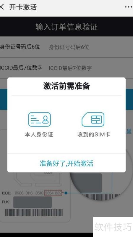 5、 请准备好SIM卡和身份证,点击开通进入激活流程。