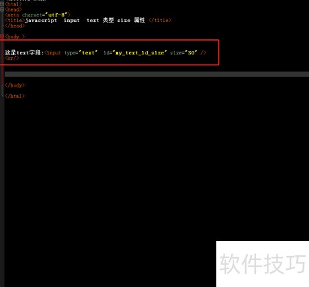2、 创建一个文本输入框,类型为text,指定其ID为my_text_id_size,并将输入框的显示长度设为50个字符。