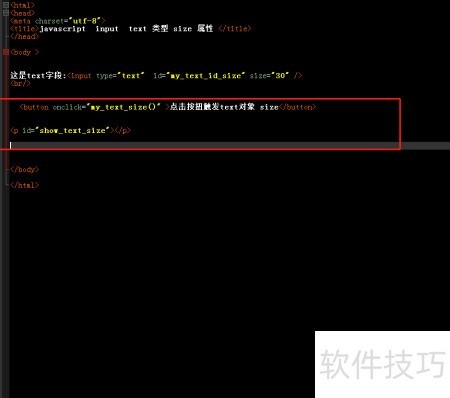4、 添加一个p标签,并将其id设置为show_text_size。