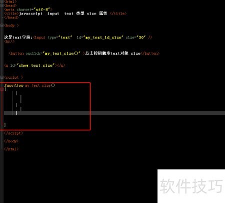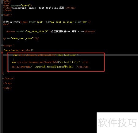 6、 在自定义函数中获取输入框对象,通过size属性读取输入字符长度,并将结果动态插入p标签内显示。