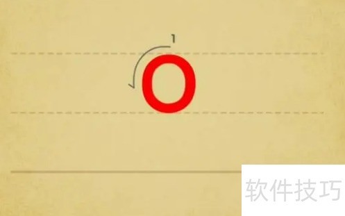2、 o应逆时针方向起笔,从顶端开始绕行,最终回到起点,一笔完成。