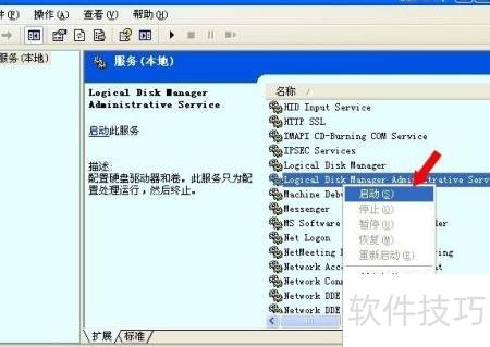 3、 手动启动逻辑磁盘管理服务的方法:进入计算机管理,选择服务与应用程序,找到逻辑磁盘管理管理服务,右键点击并选择启动即可。
