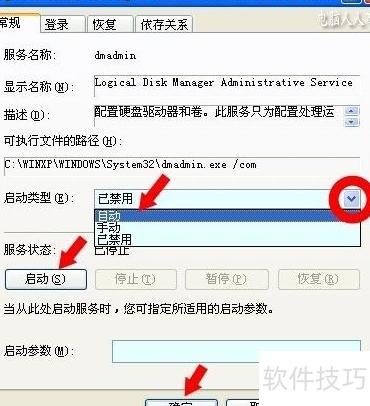 8、 若启动菜单呈灰色无法点击,可进入服务属性,将启动类型设为自动或手动,应用后点击启动并确认。