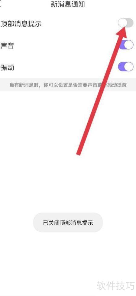 5、 第五步,关闭顶部消息提示的开关即可完成操作。