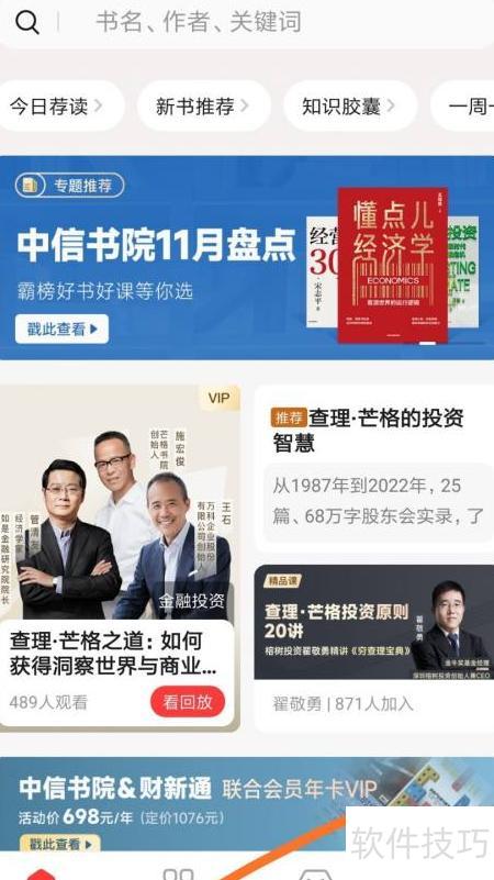 1、 打开中信书院,点击底部分类选项。