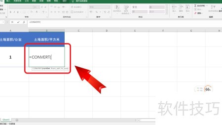 3、 第三步,点击并输入函数公式CONVERT即可。