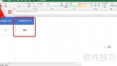 6、 点击输入图标,系统自动换算出1公亩等于100平方米,确认无误后保存文件,完成计算。