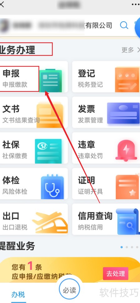 1、 进入小程序,选业务办理,点击申报即可。