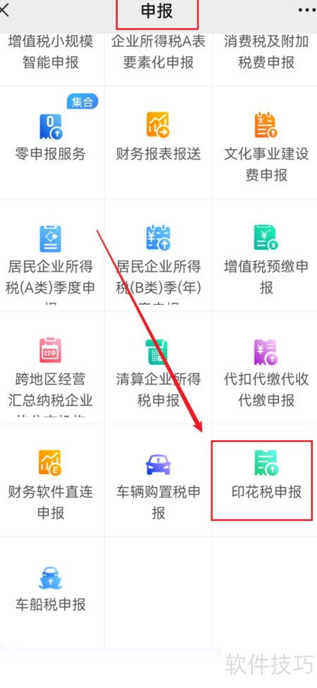 2、 进入页面后点击印花税申报选项。