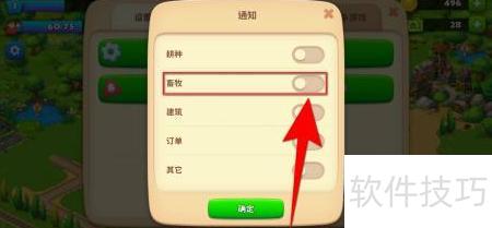 4、 畜牧功能开启后,圆点变绿即表示梦想城镇通知已成功启用。