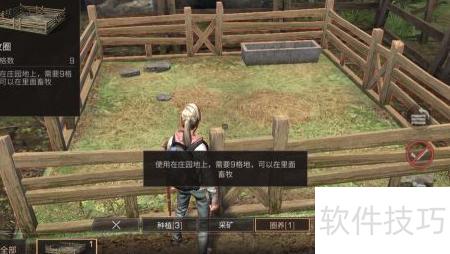 7、 放置畜牧圈后可进入使用,每个畜牧圈耐久度为50点,依据所养牲畜种类不同,大致能使用五次左右。