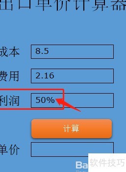 1、 在出口单价计算器中输入产品成本。