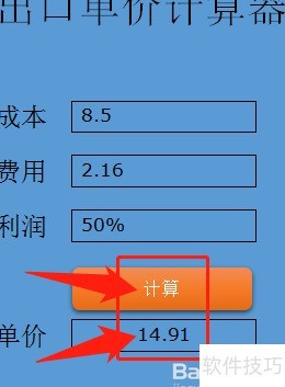 4、 点击下方计算按钮,即可得出产品出口单价。