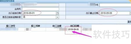 6、 选择出口起始日期为9月1日,出口截止日期为9月8日,点击查询按钮,即可查看9月份的出口记录。
