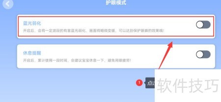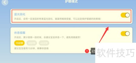 5、 点击开启蓝光减弱功能(见图中红色标记处)