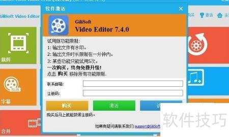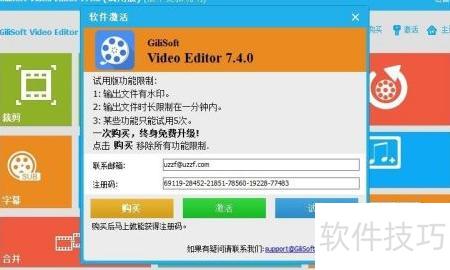 9、 修改hosts文件后,重新启动软件需再次输入注册邮箱与序列号方可正常使用。界面语言可在右上角菜单中自行设定。完成设置后,即可畅享GiliSoft Video Editor带来的高效视频编辑体验,轻松实现创意构思,享受流畅便捷的制作过程。