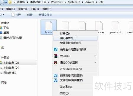 8、 解决方法:进入计算机C盘,依次打开Windows、System32、Drivers、etc文件夹,找到hosts文件,用记事本打开,在文件末尾添加两行指定内容,保存修改后关闭即可。