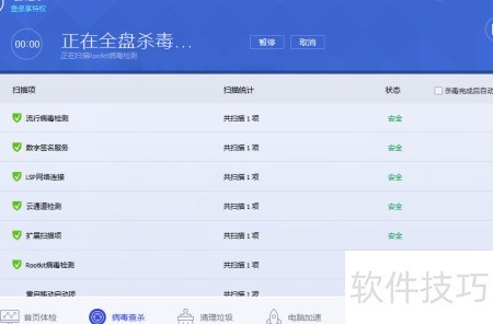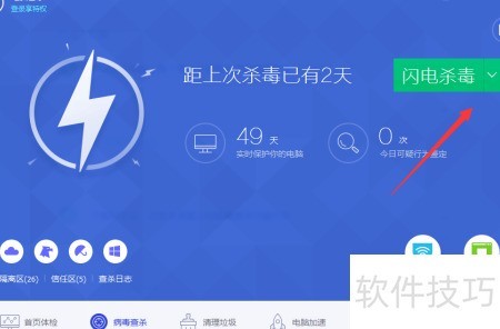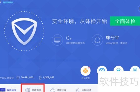 2、 下载完成后,点击主界面病毒查杀功能即可开启。