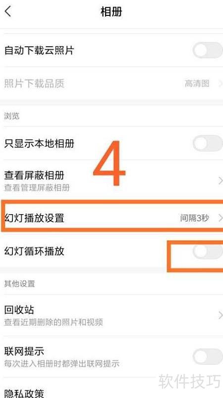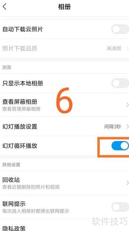4、 幻灯循环播放按钮变蓝即表示已成功开启。