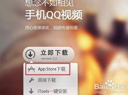 2、 点击立即下载,在弹出的选项中选择首个方式,通过 AppStore 获取手机QQ应用。