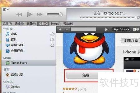 4、 打开 iTunes,在软件界面中找到手机 QQ,点击免费按钮即可将其下载到设备中。整个过程简单快捷,无需支付任何费用,轻松完成安装。