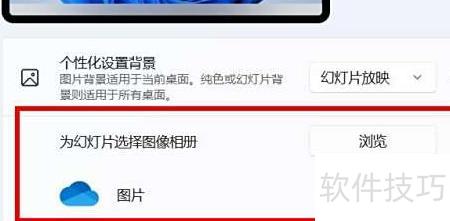 现在来看看如何在Windows 11中设置桌面背景的幻灯片放映相册功能。