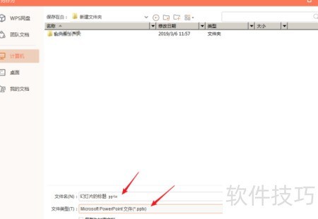 6、 完成幻灯片制作后,点击保存按钮或使用快捷键Ctrl+S。在弹出的保存窗口中,于文件名栏输入名称,文件类型保持默认设置,选择目标文件夹,最后点击保存即可完成操作。