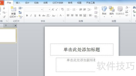 1、 启动PPT程序并新建一张幻灯片。
