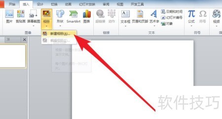 2、 在插入菜单中点击相册选项。