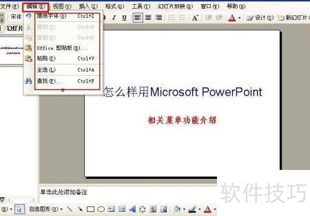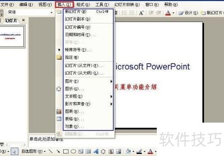 6、 菜单中包含新建幻灯片、复制幻灯片、添加编号及日期时间等常用功能,这些工具在日常操作中频繁使用,建议结合实际多加练习以熟练掌握。