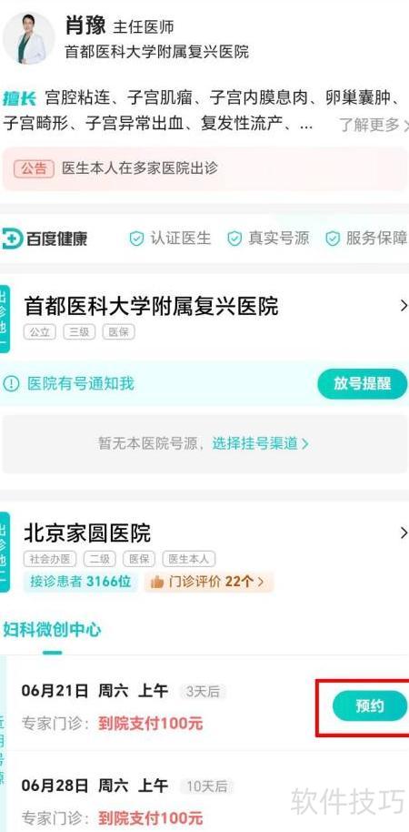 1、 打开手机百度浏览器,搜索肖豫挂号,进入后点击预约挂号即可完成操作。