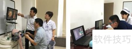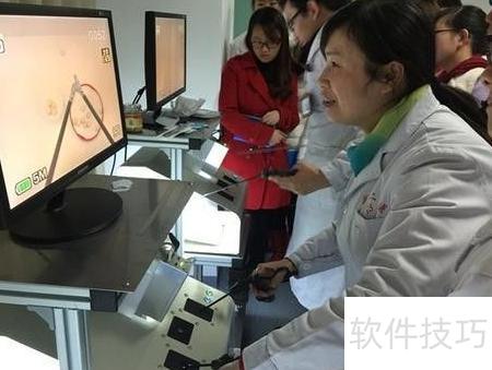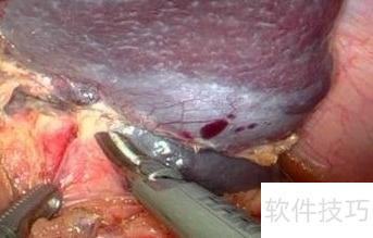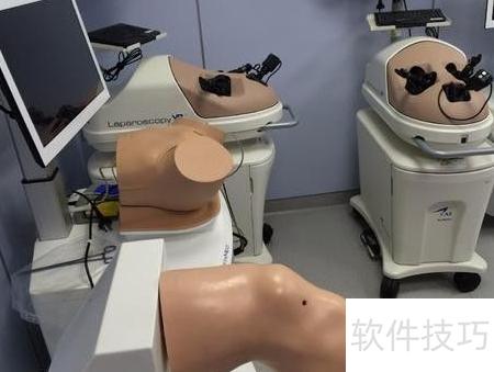 5、 在另外两个穿刺孔中分别置入分离器和抓钳,分离并暴露手术区域组织,取出分离器后放入针具与持针钳,一手固定术区,另一手进行缝合及打结等操作练习。