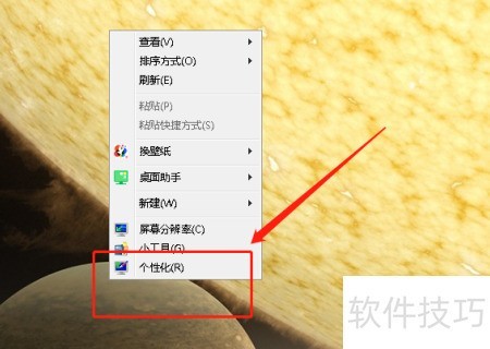 1、 在电脑桌面空白处右击,选择个性化即可进入设置。