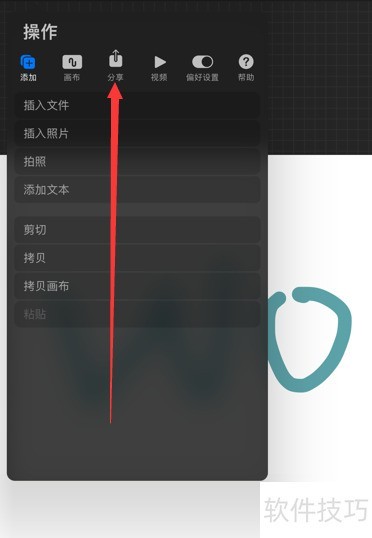 6、 如箭头指示,点击分享以打开编辑页面。