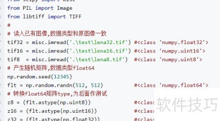 1、 读取lena.tif图像文件,获取uint8或float32格式的矩阵数据;同时利用numpy生成一个float64类型的随机矩阵mat。