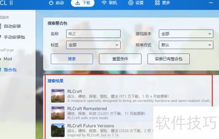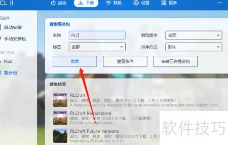 4、 搜索所需整合包,方法所示