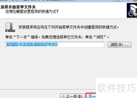 7、 出现选择开始菜单文件夹界面,点击下一步继续操作。