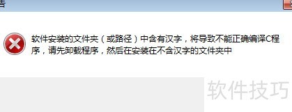 13、 若弹出警告提示,内容为软件安装目录包含中文字符,可能导致C程序无法正常编译,请先卸载该程序,随后将其重新安装至路径中不含中文字符的文件夹。若使用过程中出现C程序编译异常,也应首先卸载软件,再选择全英文路径重新安装,以确保程序正常运行。