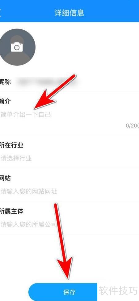 4、 输入信息后,点击保存按钮完成个人简介设置。