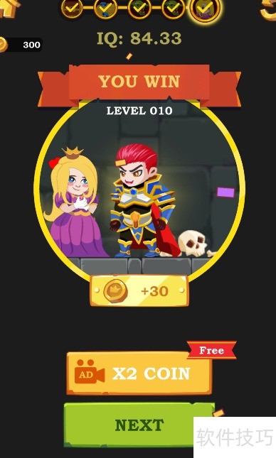5、 公主成功获救,屏幕上弹出YOU WIN通关动画,所示,顺利通过关卡。