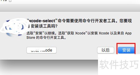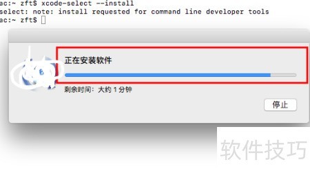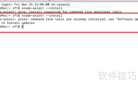 7、 返回终端,重新输入 xcode-select --install,若显示信息,则表示安装已成功。