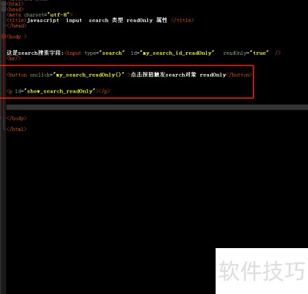 4、 添加一个p标签,并为其设置id属性值为show_search_readOnly。
