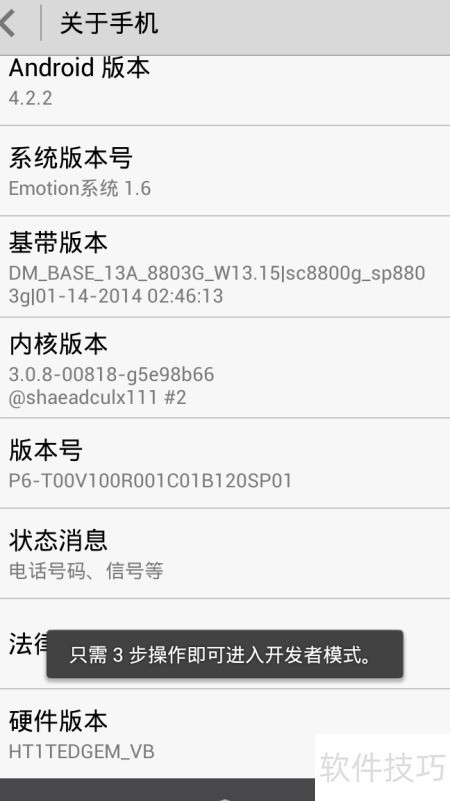 3、 连续点击版本号七次,部分手机可能需尝试内核或基带版本。
