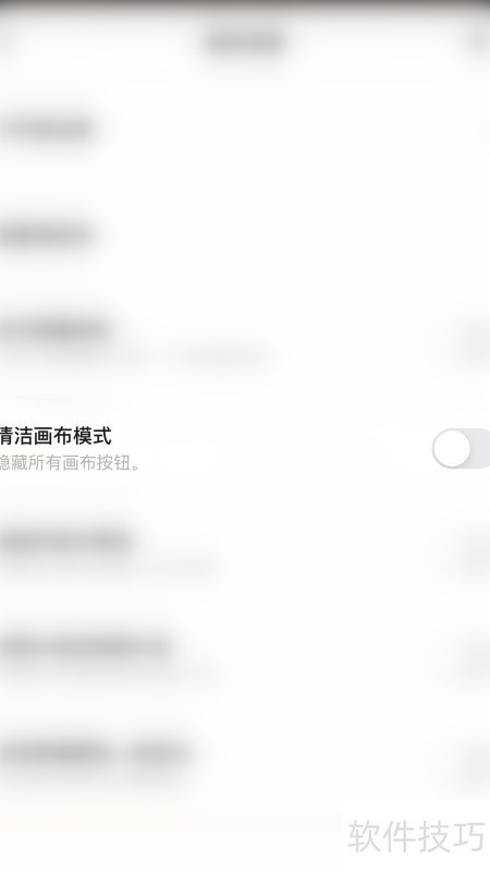 3、 在画布设置中点击清洁画布模式右侧的圆点