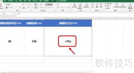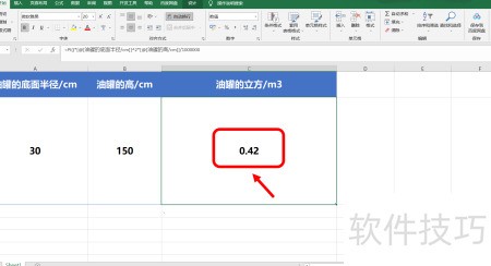 4、 第四步,将前一步结果乘以油罐底面半径的平方。