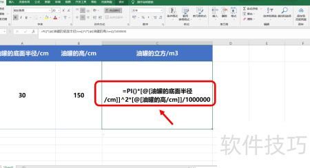 5、 先进行第一步操作,再乘以油罐高度,最后除以一百万。