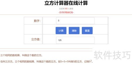 3、 按照页面提示填写信息,即可完成立方计算操作。