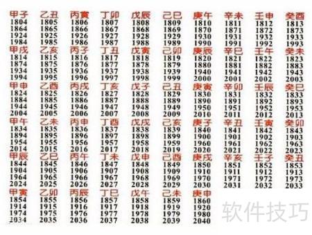 6、 十天干与十二地支按固定顺序循环搭配,形成六十个组合,称为六十甲子,所示。