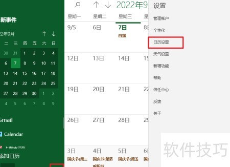 2、 点击齿轮,进入日历设置选项。