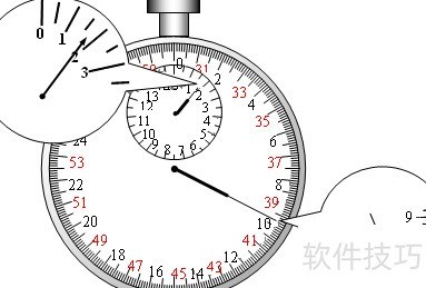 4、 小表盘指针位于1-2区间后段,故读取大表盘红字,示数为39.8秒。